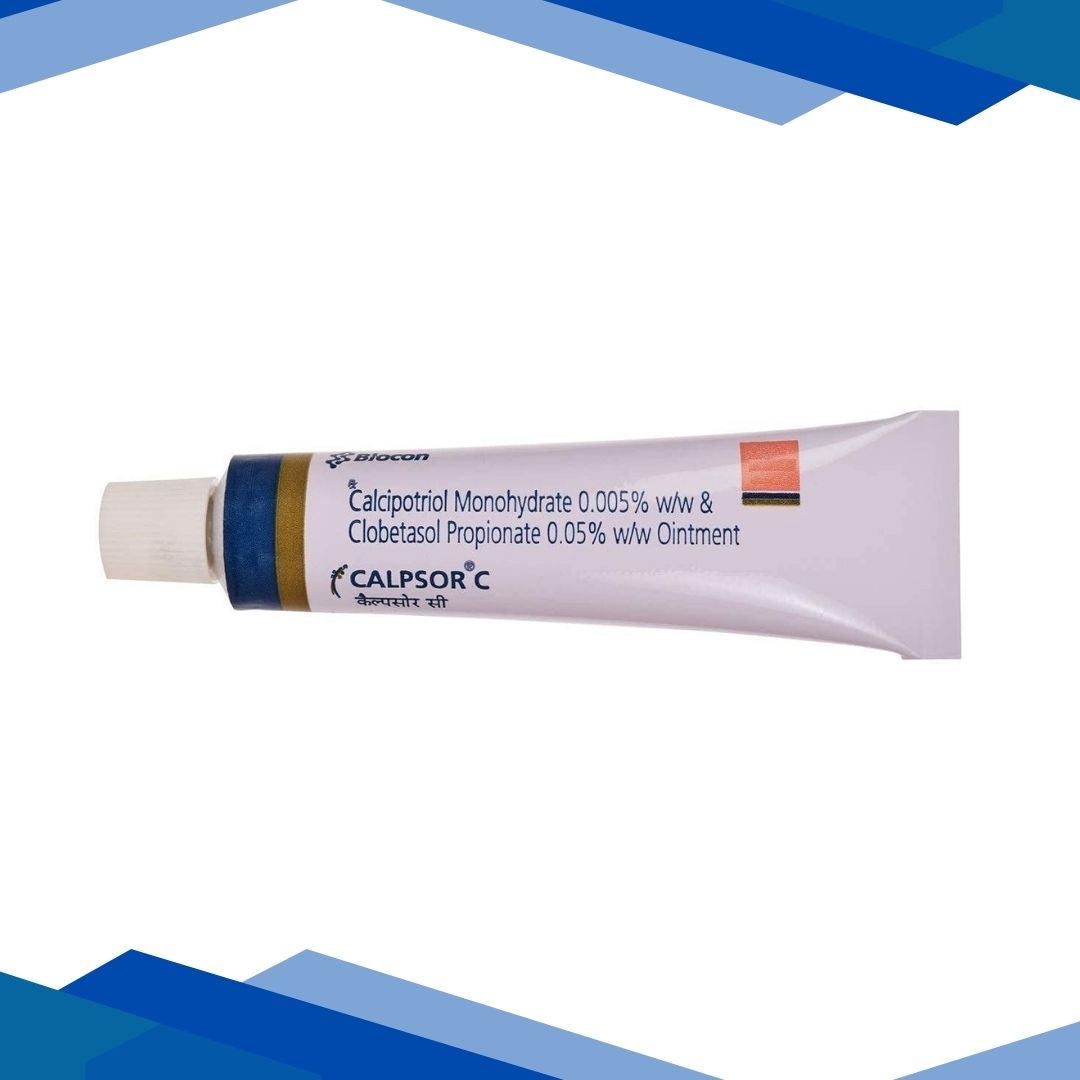 CALPSOR C OINTMENT is a combination of Calcipotriol and Clobetasol which belongs to the group of medicines called Topical Corticosteroids. It is indicated for the topical management of plaque psoriasis. Plaque psoriasis (psoriasis vulgaris) is an autoimmune disease that causes cells to reproduce very quickly which causes thick, scaly patches called plaques on the skin.