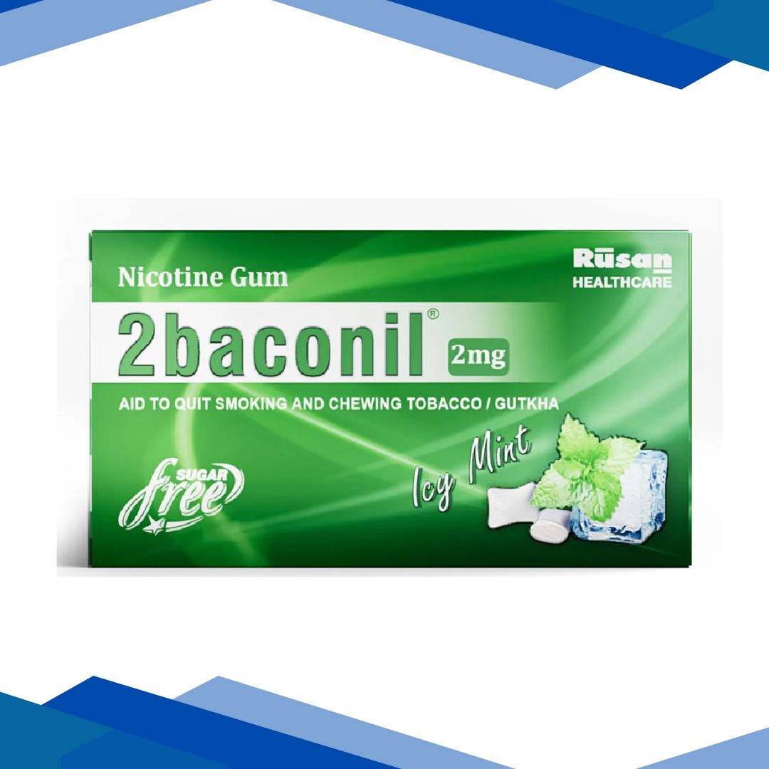 2baconil Icy Mint 2 mg Chew Gum 10’s is a nicotine replacement therapy chewing gum designed to help reduce nicotine cravings and withdrawal symptoms when quitting smoking or tobacco use by providing controlled doses of nicotine in an icy mint flavour. For more details kindly click on Medicine Salts below: