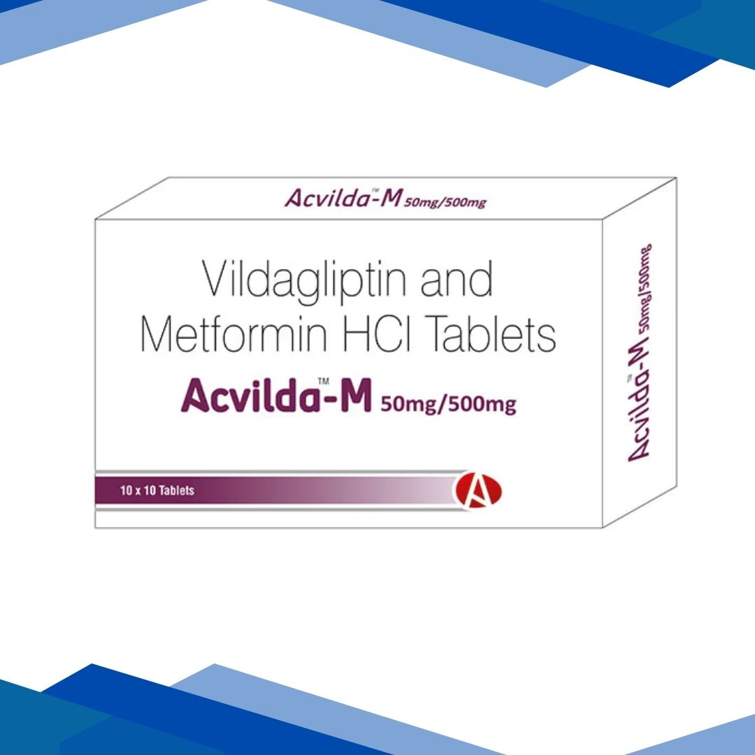 ACVILDA M 500 TABLET is used to manage type 2 diabetes (non-insulin-dependent diabetes mellitus) in adult patients whose diabetes cannot be controlled by diet and exercise alone and/or with other medicines used to manage diabetes (insulin or sulphonylureas such as glimepiride and glipizide). It is a combination of Metformin and Vildagliptin which belongs to a group of medicines called Antidiabetic agents.