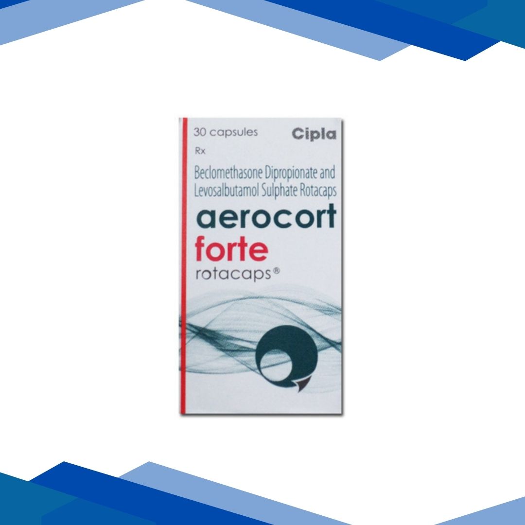 AEROCORT FORTE ROTACAP is a combination of Beclomethasone and Levosalbutamol which belongs to the group of medicines called Anti-asthmatic drugs. It is used to manage asthma and chronic obstructive pulmonary disease (COPD). It relieves wheezing, shortness of breath, coughing and chest tightness caused due to narrowing of airways.