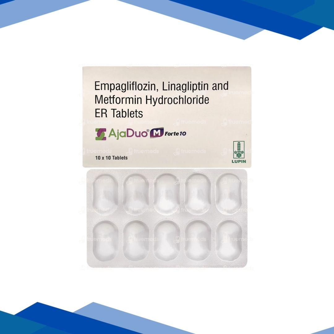 Ajaduo M Forte 10 Tablet (strip of 10) is a triple fixed-dose combination medicine used in type 2 diabetes to help control blood sugar by targeting multiple pathways. For more details kindly click on Medicine Salts below: