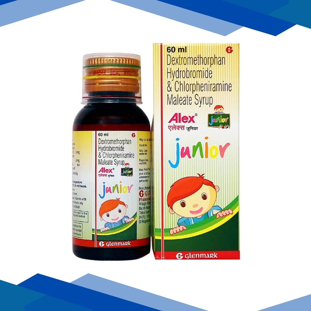 aLEX junior Syrup is a combination of two medicines used in the treatment of dry cough. It can provide temporary relief of cough due to throat irritation, sneezing, and running nose. It works by reducing the activity of the brain’s cough center and blocking the effects of histamine.