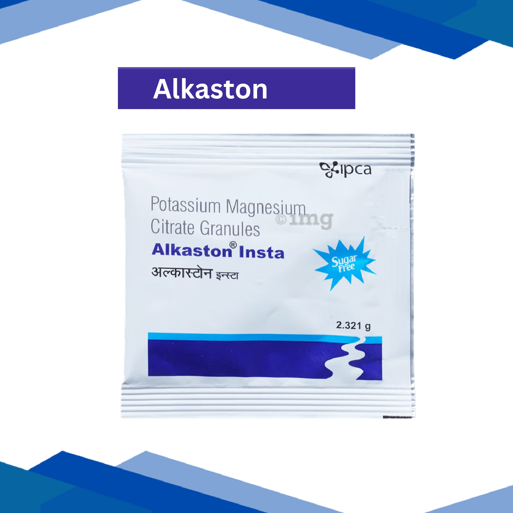 Alkaston is a urinary alkaliser used to help prevent and treat kidney stones (renal calculi) and conditions like hypocitraturia. It works by increasing urine pH (making it less acidic) and raising levels of citrate and key electrolytes in urine to reduce the risk of crystal formation in kidneys. For more details kindly click on Medicine Salts below: