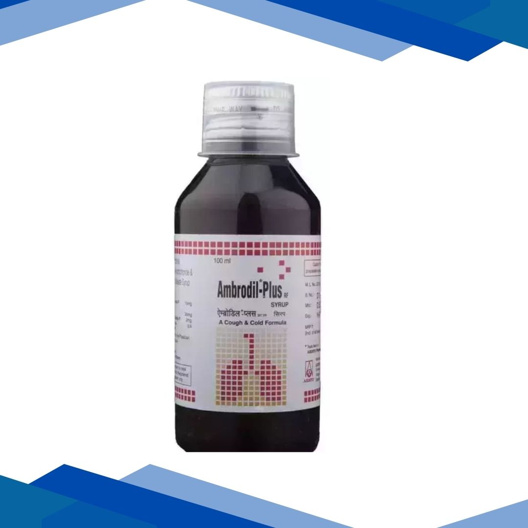 AMBRODIL PLUS RF SYRUP contains Ambroxol, Chlorpheneramine maleate, Pseudoephedrine which belongs to the group of medicines called mucolytic agents, antihistamines, and nasal decongestants. It is used in adults and children above 6 years to manage the symptoms of the common cold, flu and allergy such as sneezing, running nose, nasal block, watery eyes, itching, cough, and sinus block.