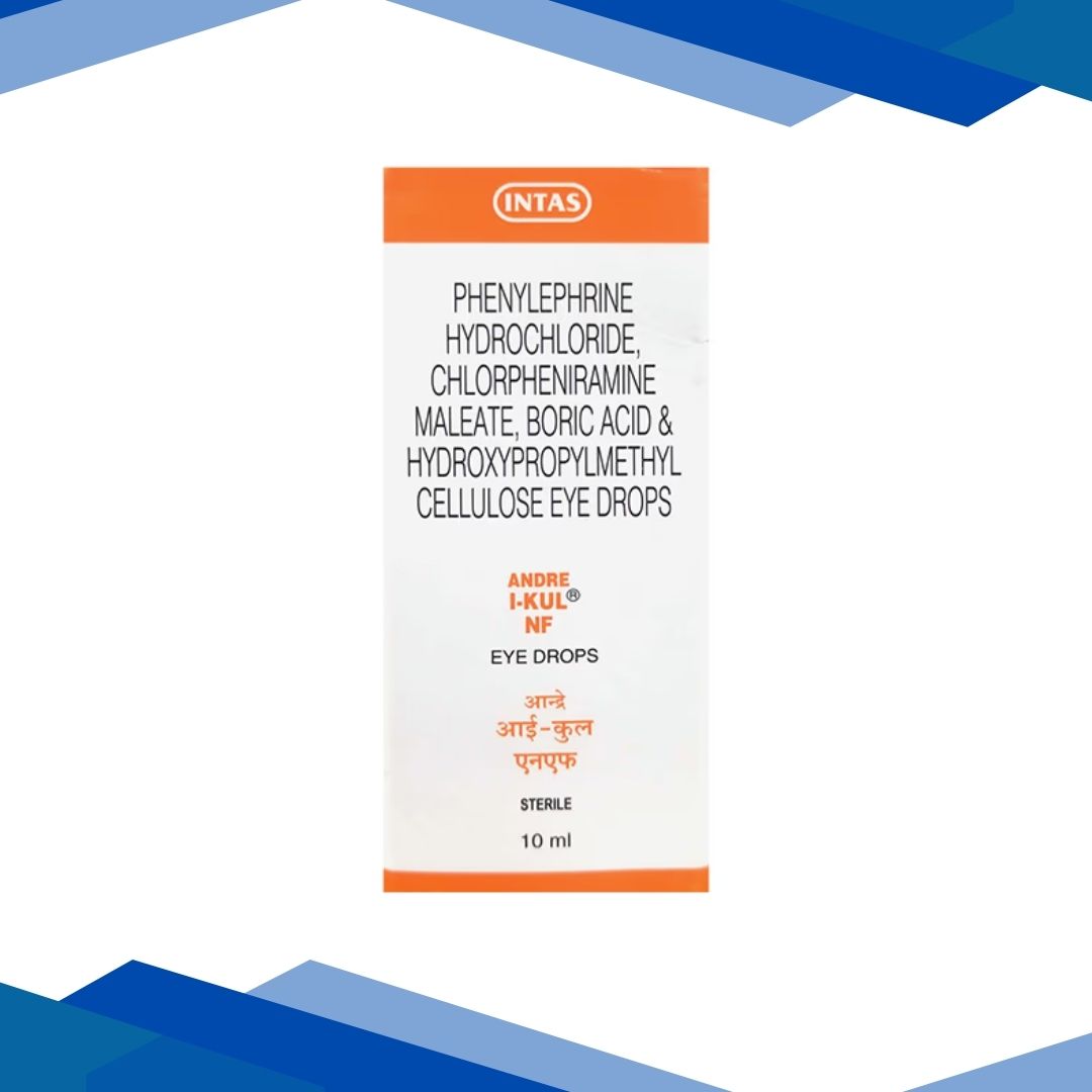 ANDRE I KUL NF Eye Drops 10ml* is used for relieving redness, itching, burning and irritation of the eyes often caused by minor allergic reactions or environmental irritants like dust and smoke. For more details kindly click on Medicine Salts below: