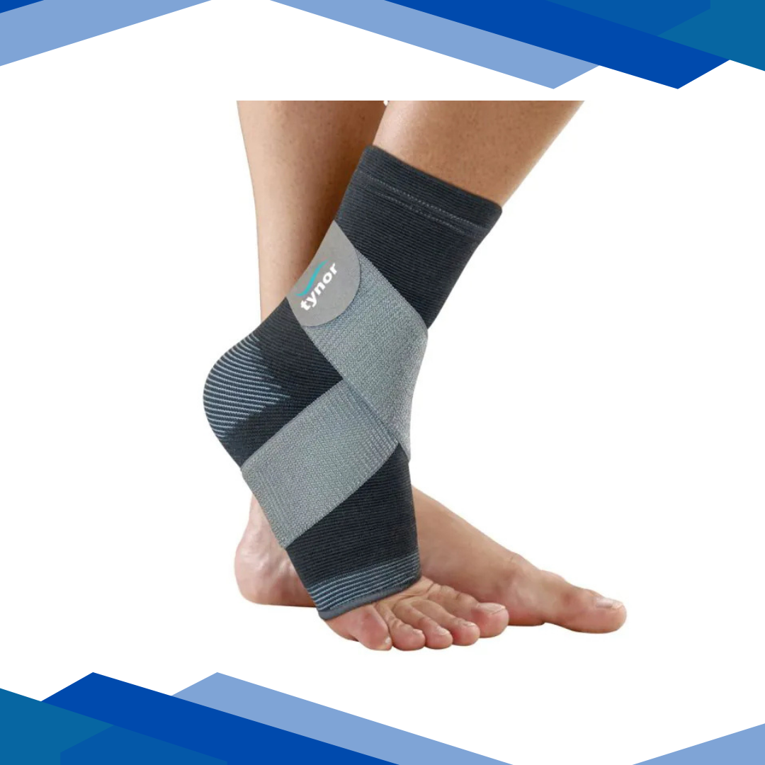 Efficient device to aid, compress and partly fix the ankle after it is injured or sprained to leash the results of the pain, oedema or inflammation. It is made of two parts, compression sleeve and elasticized strap. The sleeve is knitted in 3-D thus making it fit the anatomical structure of a pair of ankles with precision.