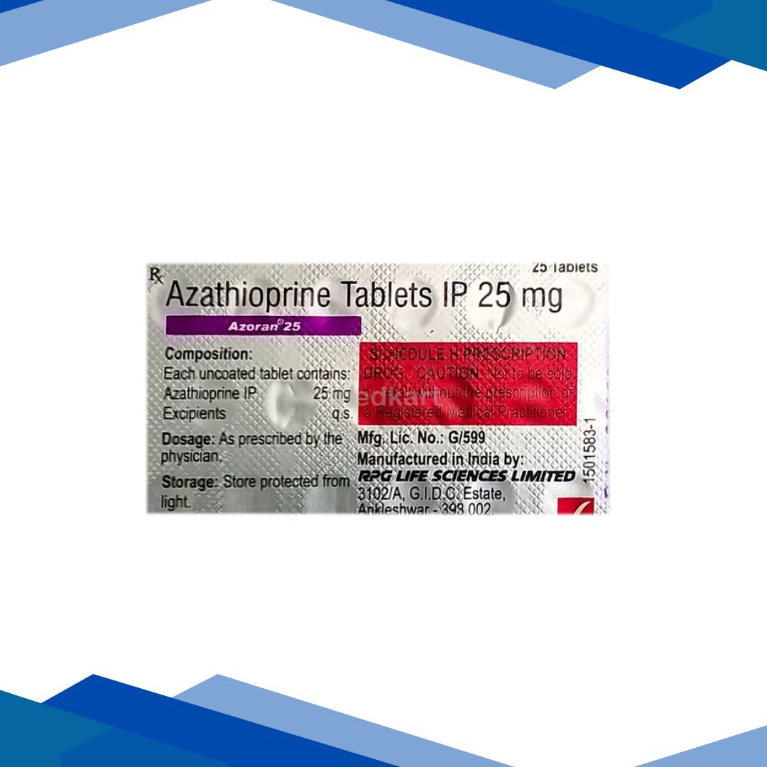 AZORAN 25MG TABLET contains Azathioprine which belongs to the group of medicines called Immunosuppressants. Azathioprine is used to help the body to accept a kidney, liver, heart, lung, or pancreas transplant.
