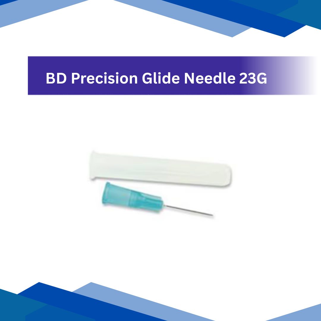 Sterile, single‑use hypodermic needle with 23 gauge, typically 1 inch (25 mm) length, featuring a tri‑bevel tip and thin wall design for smoother penetration. Compatible with standard luer‑lock or slip syringes.