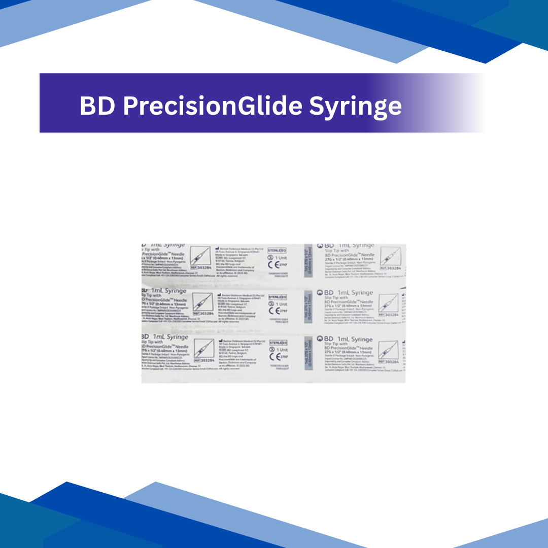 The BD PrecisionGlide line of syringes (or needles combined with syringes) is designed with advanced features like a thin-wall barrel and a tri-bevel tip to make injections smoother and reduce patient discomfort.