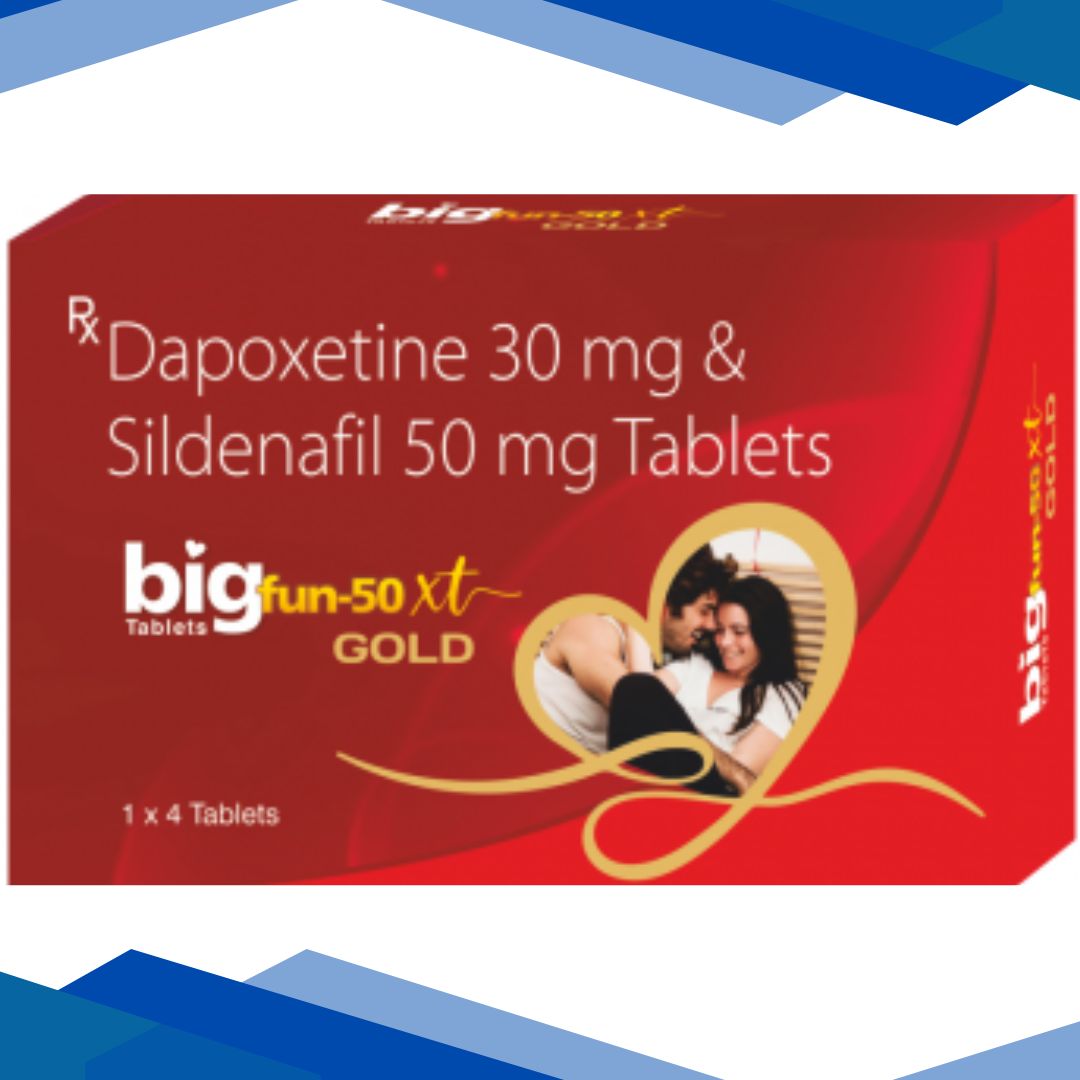 Bigfun Gold XT 50mg/30mg Tablet is a combination of two medicines used in the treatment of premature ejaculation and erectile dysfunction in adult men. It increases blood flow to the penis to help men get an erection. This medicine should be used only when prescribed by a doctor.
