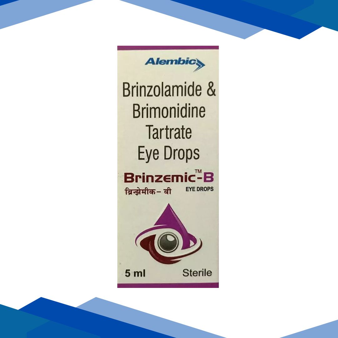 BRINZEMIC B EYE DROPS is a combination of Brimonidine and Brinzolamide which belongs to the group of medicines called Ophthalmic anti-glaucoma agents. It is used in adults to manage ocular hypertension and glaucoma (increased pressure within the eyes). It is typically used in patients who are not responding well to therapy with single agents.