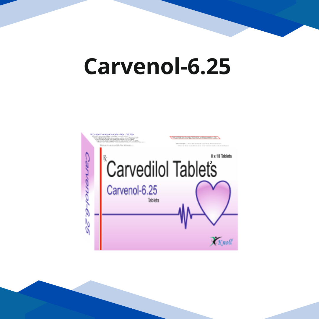 Carvenol 6.25mg Tablet is a medicine used to treat high blood pressure, heart-related chest pain (angina), and heart failure. It works by relaxing the blood vessels, so that blood can flow more easily to the heart. Lowering blood pressure also helps prevent future heart attacks and strokes. For more details kindly click on Medicine Salts below: