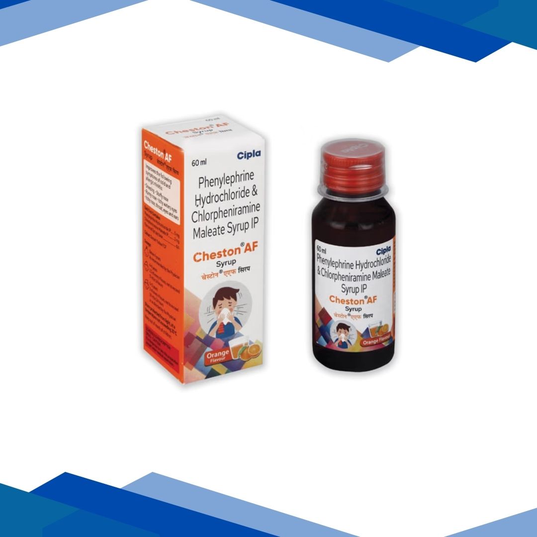 Cheston AF Orange Flavour Syrup 60 ml is used to relieve symptoms of the common cold and allergic conditions such as runny or stuffy nose, sneezing, nasal congestion, sinus pressure, and watery or itchy eyes. For more details kindly click on Medicine Salts below: