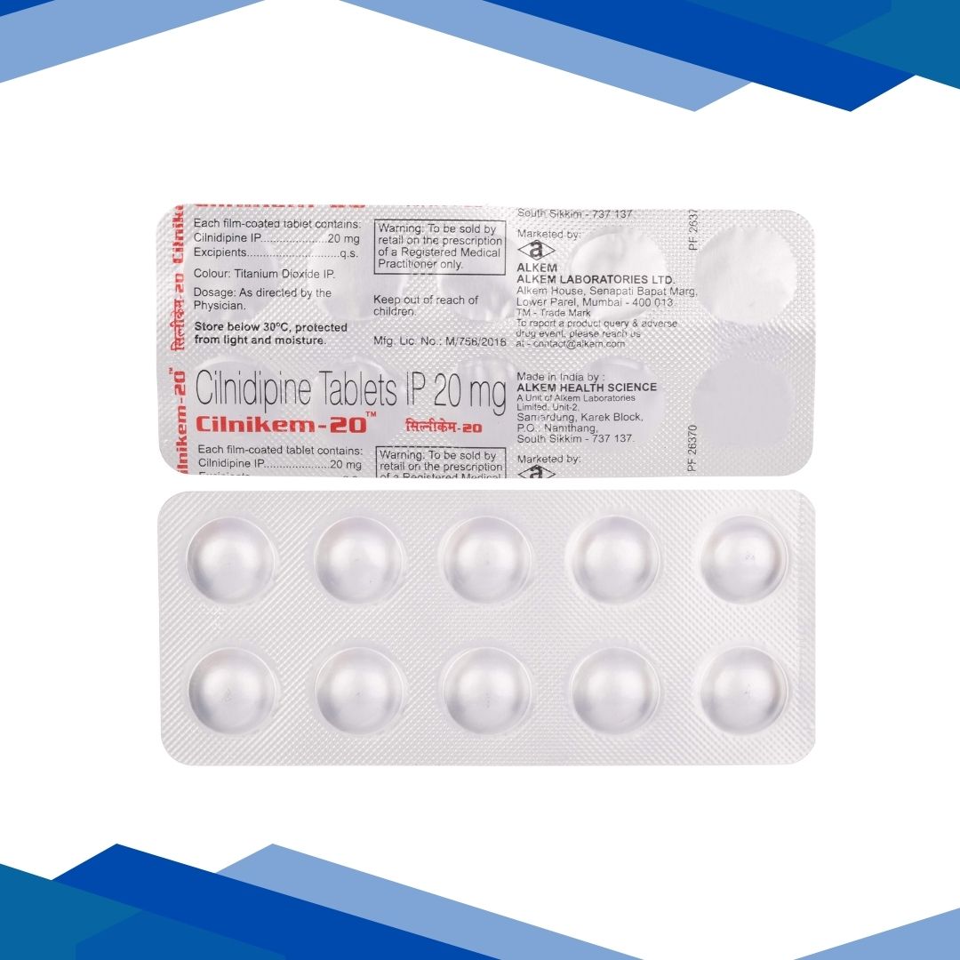 Alkem Cilnikem 20mg Tablets for Hypertension 10s is used for the management of high blood pressure (hypertension). It contains an active ingredient that relaxes and widens blood vessels, helping reduce elevated blood pressure and lowering strain on the heart. For more details click on the Medicine Salts below:
