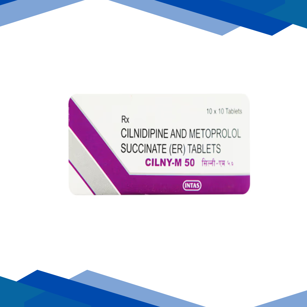 Cilny M 10mg/50mg Tablet is a medicine used to treat hypertension (high blood pressure). It is a combination of two medicines that effectively controls blood pressure when a single medication is not effective. By lowering the blood pressure, it helps in preventing future heart attacks and strokes. For more details kindly click on Medicine Salts below: