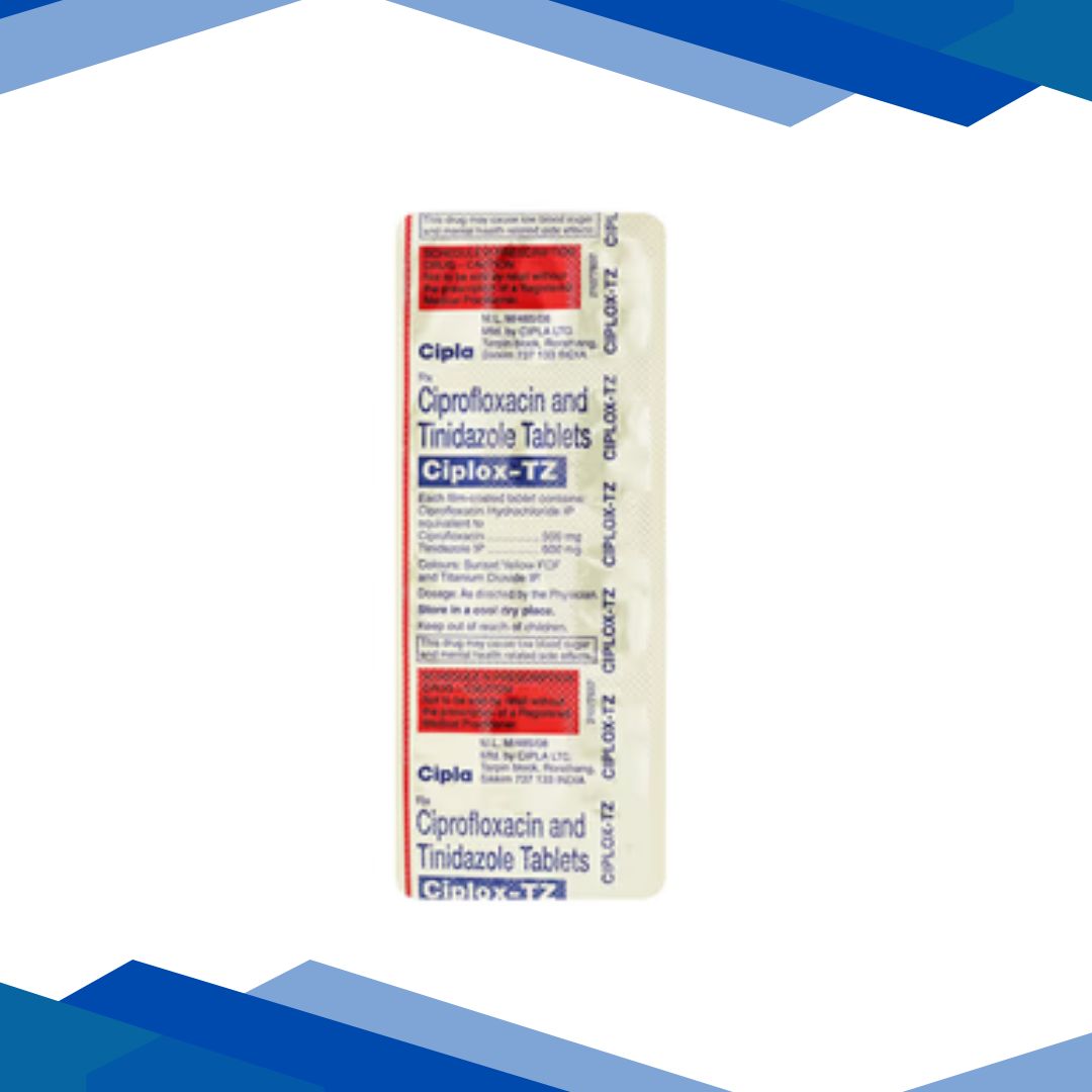Ciplox TZ Tablet 10’s is a combination antibiotic used to treat intestinal infections caused by bacteria and protozoa. It helps relieve symptoms such as diarrhea, stomach cramps, and abdominal pain by eliminating the infection-causing microorganisms. Regular use as prescribed ensures complete recovery and prevents recurrence. For more details kindly click on Medicine Salts below: