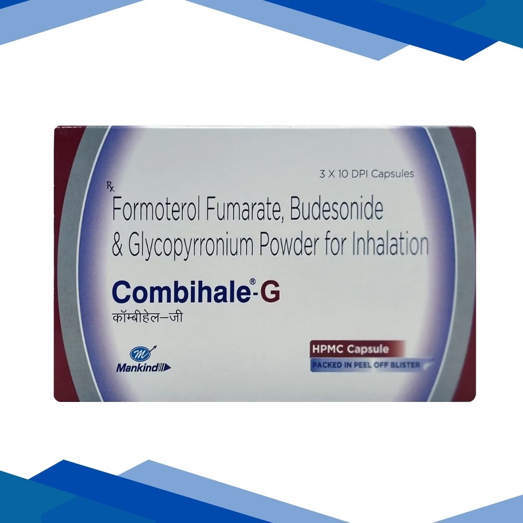 COMBIHALE G DPI Capsule 10’s is used for long‑term maintenance treatment of asthma and chronic obstructive pulmonary disease (COPD) to help open the airways, reduce inflammation, and ease breathing; it is not for sudden relief of acute breathing problems. For more details kindly click on Medicine Salts below: