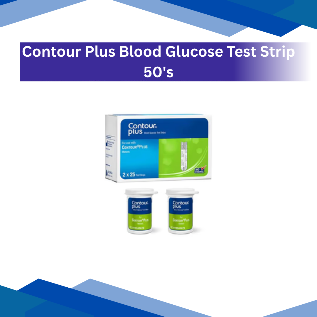 The Contour Plus Blood Glucose Test Strips (50’s) are designed for use with Contour Plus and Contour Plus ONE blood glucose meters. These strips require only 0.6 µL of blood and provide accurate results in just 5 seconds. They feature Second-Chance® sampling, allowing users to apply more blood to the same strip if the first sample was insufficient. The strips are coded automatically, eliminating the need for manual coding.