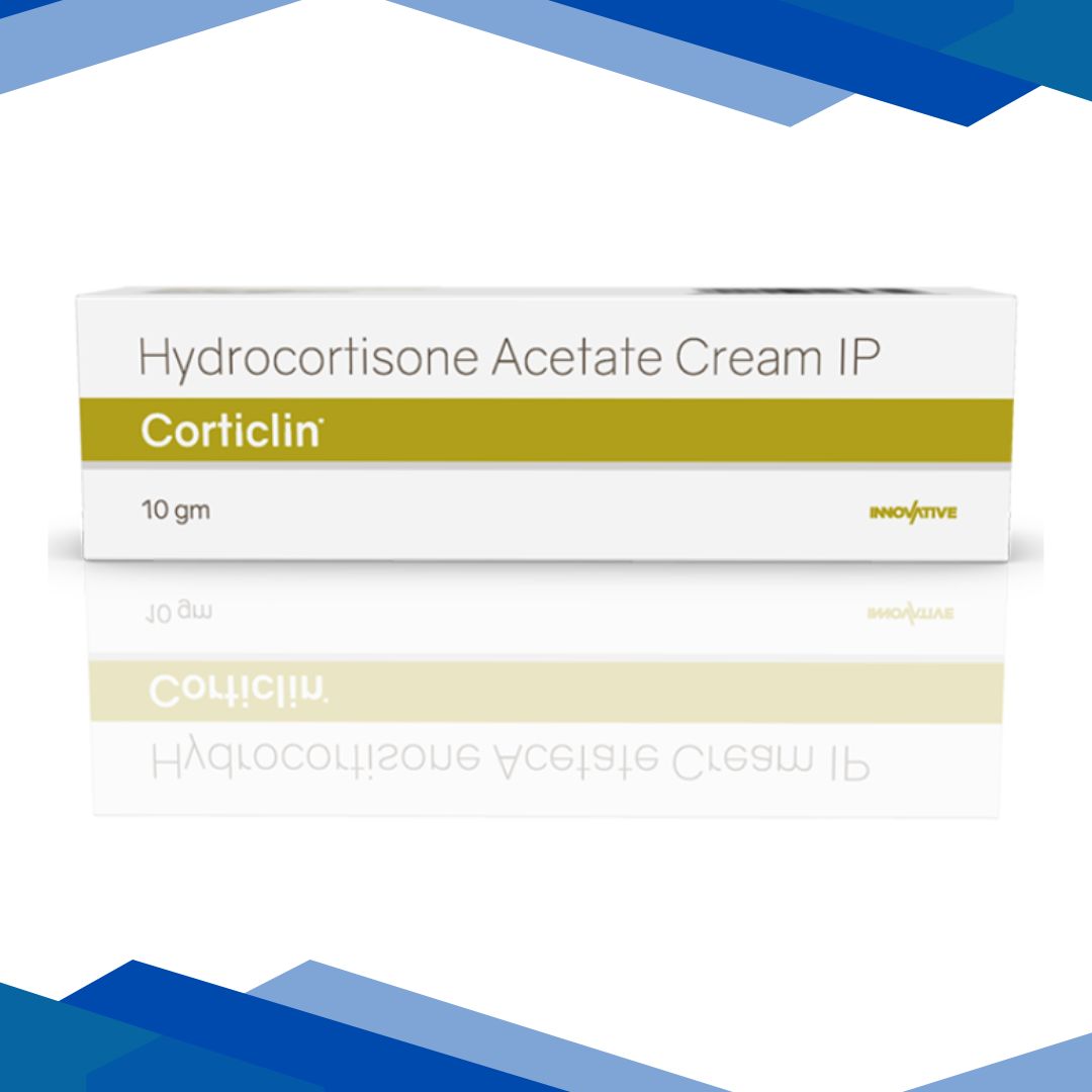 CORTICLIN CREAM contains Hydrocortisone acetate which belongs to the group of medicines called Corticosteroids. CORTICLIN CREAM is used to manage all types of eczema (type of skin inflammation), dermatitis (itching) and insect bite reactions in affected individuals.