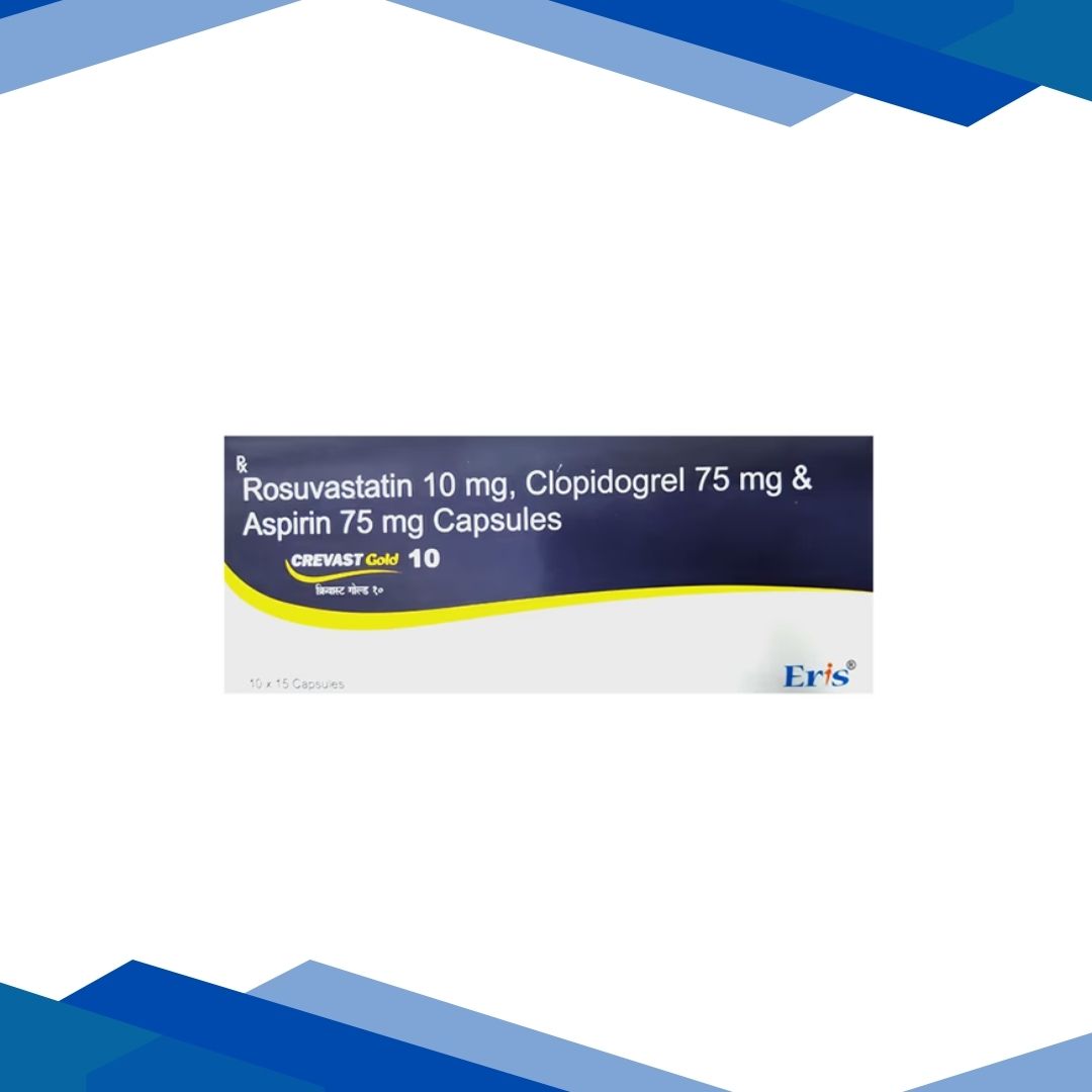 CREVAST GOLD 10 Capsule are used to lower cholesterol and prevent blood clots in people with heart disease. This combination helps reduce the risk of heart attack, stroke, and complications after stent placement. For more details kindly click on Medicine Salts below: