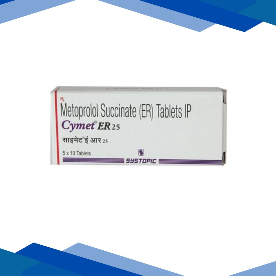 Cymet ER 25mg Tablet 10’s is a long-acting heart medicine used to treat high blood pressure (hypertension), chest pain (angina), irregular heart rhythms (arrhythmia), and to help prevent heart attack or related complications. For more details kindly click on Medicine Salts below: