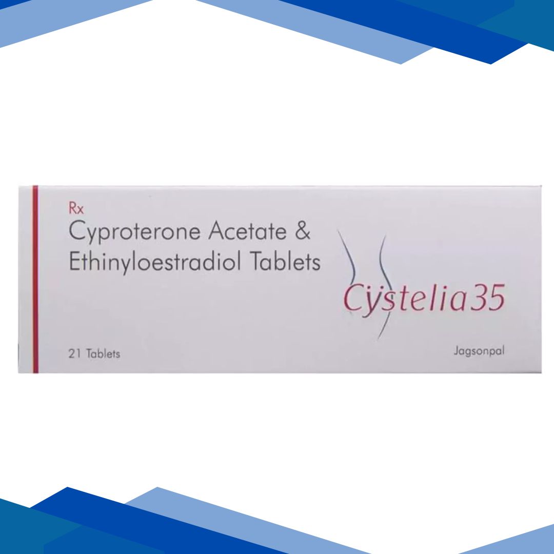 Cystelia 35 Tablet is a combination of two hormonal medicines used to treat symptoms of polycystic ovary syndrome (PCOS), such as excessive hair growth (hirsutism), acne, and irregular periods. It also works as a contraceptive; hence, avoid using any other contraceptive pill.