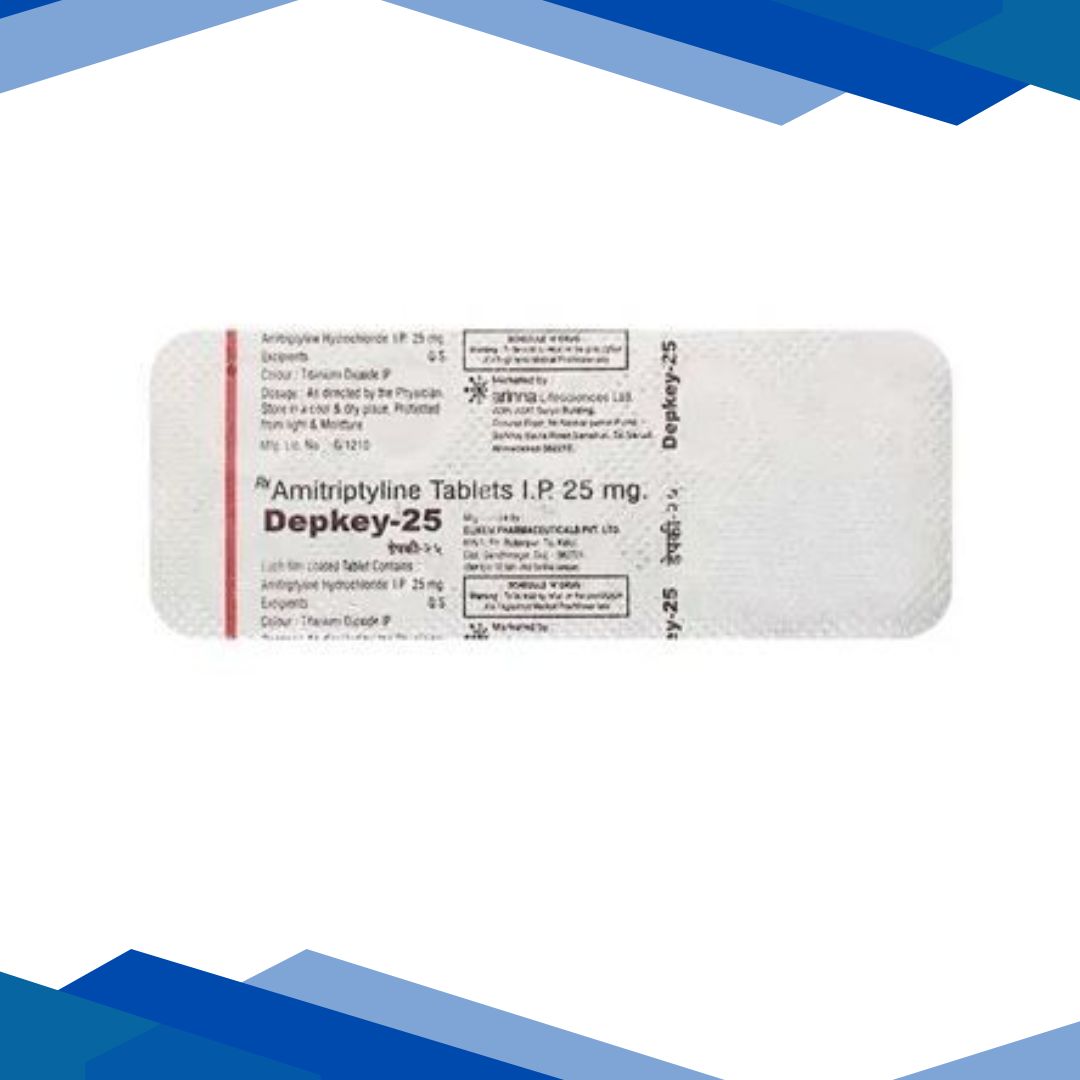 Depkey 25 mg Tablet 10’s is a prescription antidepressant medicine used in the management of depression, neuropathic pain (nerve‑related pain), chronic tension‑type headaches and migraine prophylaxis in adults by increasing and balancing certain natural brain chemicals (serotonin and norepinephrine) that affect mood, emotions and pain perception; it may also be used to treat nocturnal bed‑wetting (enuresis) in children aged 6 years and above under medical supervision. For more details kindly click on Medicine Salts below: