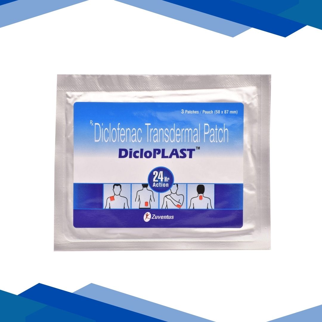 DICLOPLAST 100MG PATCH contains Diclofenac which belongs to the group of medicines called Nonsteroidal Anti-Inflammatory Drugs (NSAIDs). It is used for pain management in osteoarthritis (flexible tissue at the ends of bones wears down), sprain, strain, tennis elbow, joint pain and post-operative pain like dental procedures.