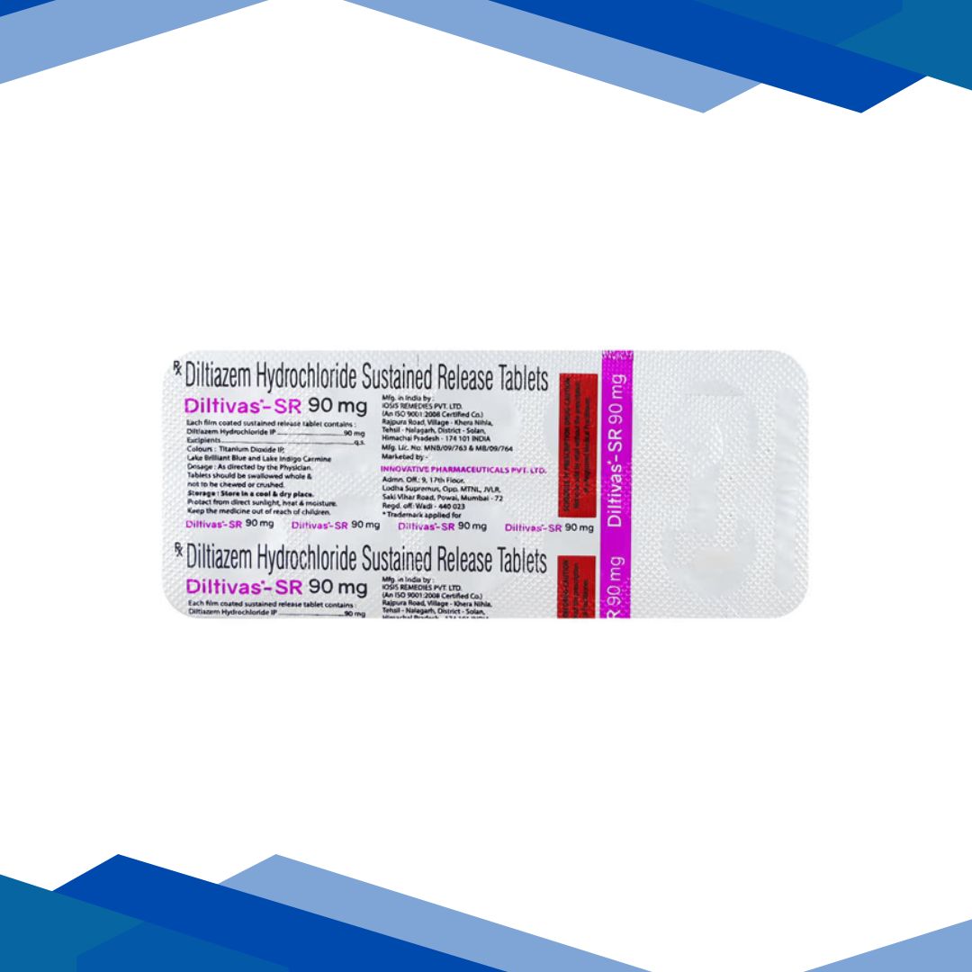DILTIVAS SR 90MG TABLET contains Diltiazem which belongs to the group of medicines called Calcium Channel Blockers. It is used to manage angina and hypertension. It also manages you from getting chest pain in future. For more details kindly click on Medicines Salts Below: