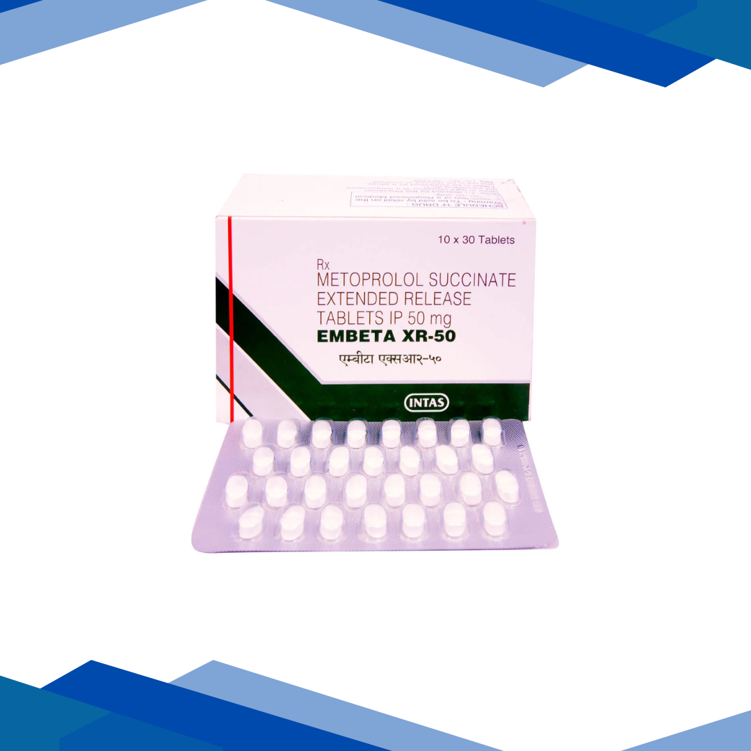 Embeta XR-50 Tablet is used to manage high blood pressure (hypertension), angina, and heart failure. It relaxes blood vessels and slows the heart rate, improving blood flow, lowering blood pressure, and reducing strain on the heart. For more details kindly click on Medicine Salts below: