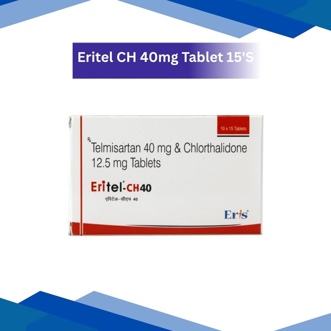 Eritel CH 40 mg Tablet 15’s is used to treat high blood pressure (hypertension). It combines Telmisartan and Chlorthalidone to relax blood vessels and remove excess fluid, thereby lowering blood pressure effectively. For more details kindly click on Medicine Salts below: