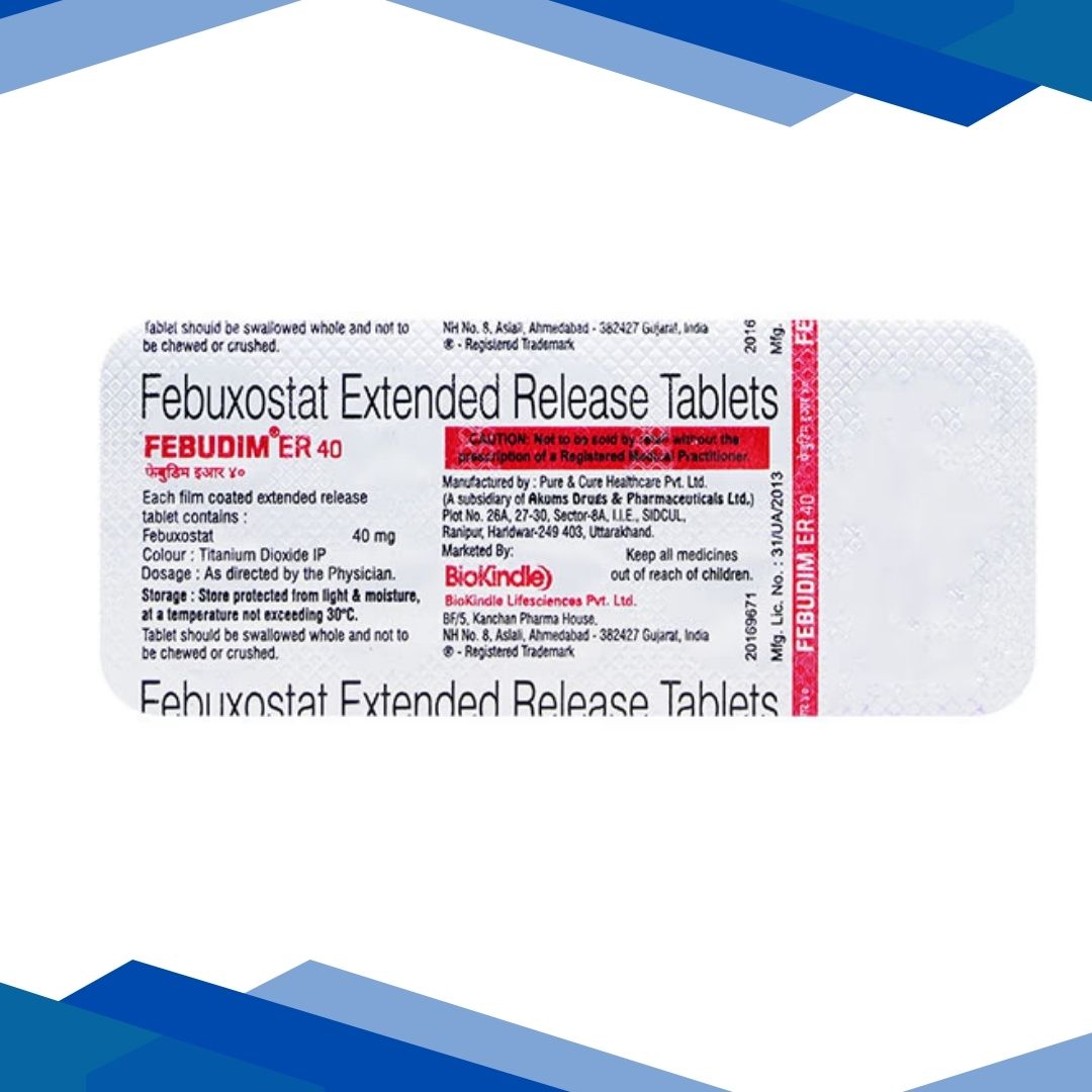 Febudim ER 40 Tablet is a medicine used to treat and prevent gout. Gout happens when there is too much uric acid in your body and it forms into crystals that can appear around your joints leading to painful and swollen joints. This medicine helps to keep uric acid levels low. For More details kindly click on Medicine salts Below: