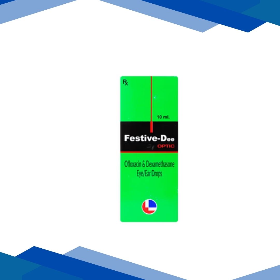 Festive-Dee Optic Eye/Ear Drops is a combination of three medicines used to treat various types of bacterial ear and eye infections. It prevents the growth of the bacteria that cause infection in the eyes or ears. It also relieves the painful symptoms of infections.