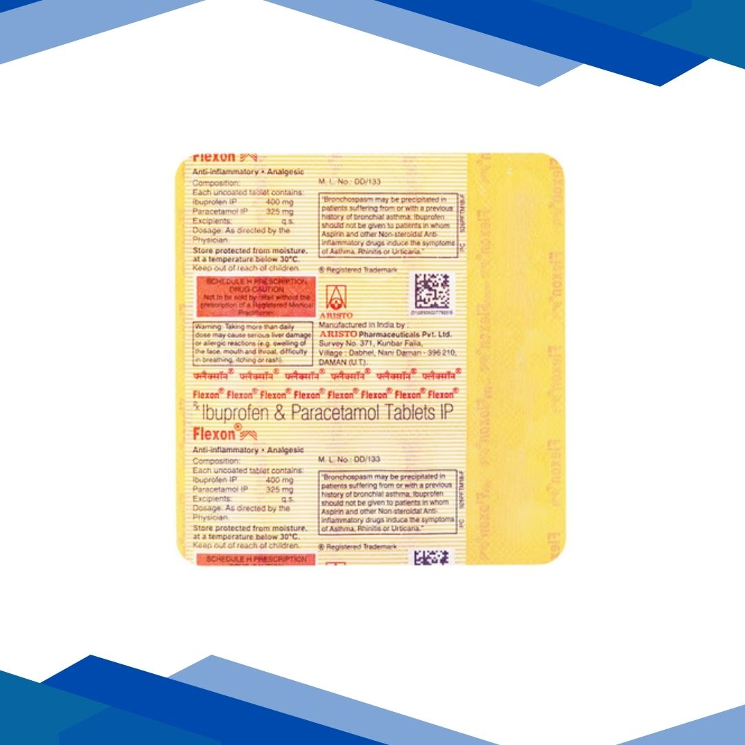 Flexon Tablet contains two painkiller medicines. They work together to reduce pain, fever, and inflammation. It is used to treat many conditions such as headache, muscle pain, pain during periods, toothache, and joint pain. For More detail kindly click on Medicine salts Below: