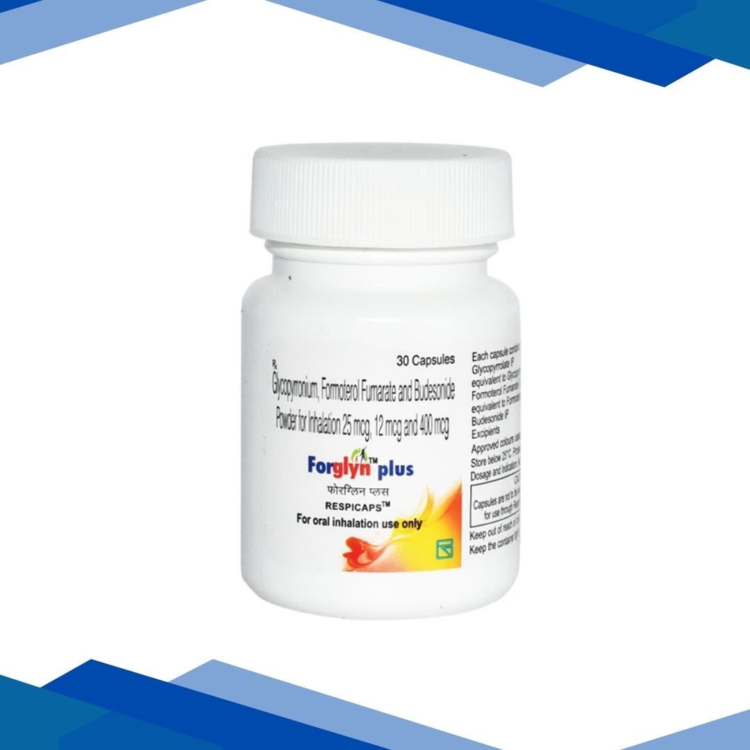 Forglyn Plus Respicap 30’s is a prescription medicine used for the long‑term maintenance treatment of chronic obstructive pulmonary disease (COPD) and helps improve breathing by relaxing and widening the airways and reducing inflammation. For more details kindly click on Medicine Salts below: