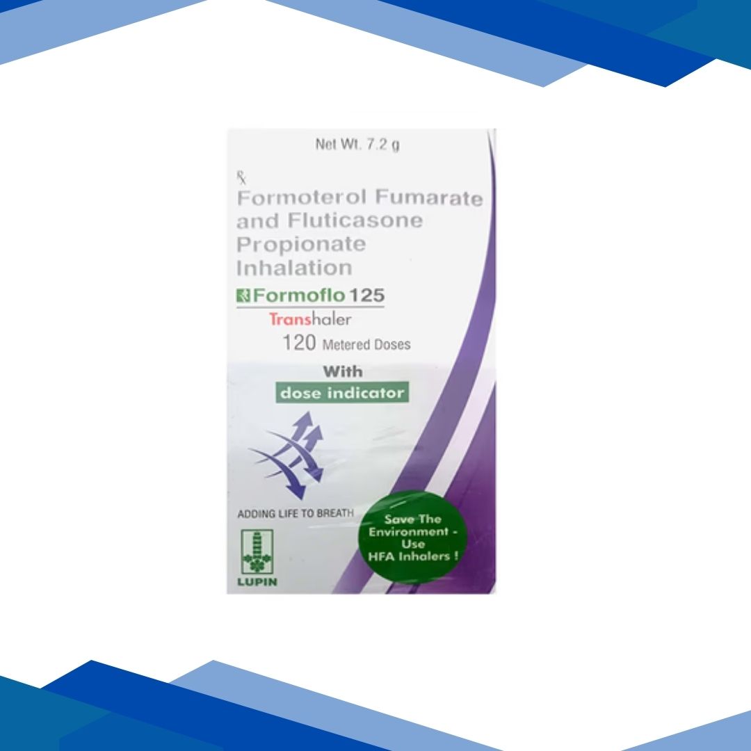 Formoflo 125 with Dose Indicator 120md Transhaler 7.2g is a prescription medicine used for the treatment and management of asthma and chronic obstructive pulmonary disease (COPD). It helps reduce inflammation in the airways and relaxes the airway muscles, thereby improving breathing and preventing respiratory symptoms. For more details kindly click on Medicine Salts below: