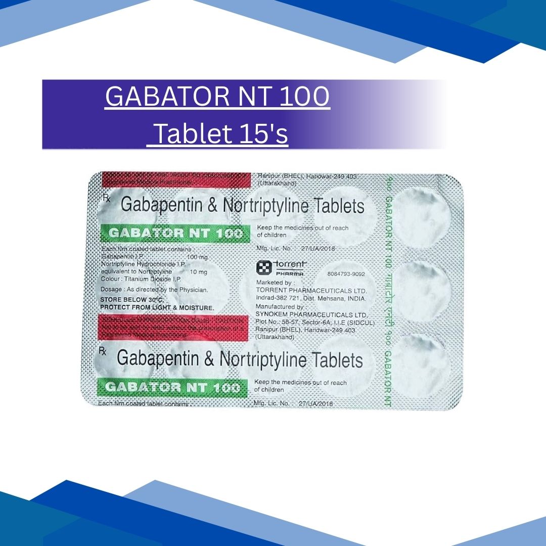 GABATOR NT 100 TABLET is a combination of Gabapentin and Nortriptyline which belongs to the group of medicines called Anticonvulsant and Antidepressants respectively. GABATOR NT 100 TABLET is used to manage neuropathic pain in adults. Neuropathic pain is caused due to damage to the sensory nerves usually due to chronic progressive nerve disease, infection, or injury. The pain could be occasional or continuous, which is thought of as a prickling, stabbing, tingling, or burning sensation.