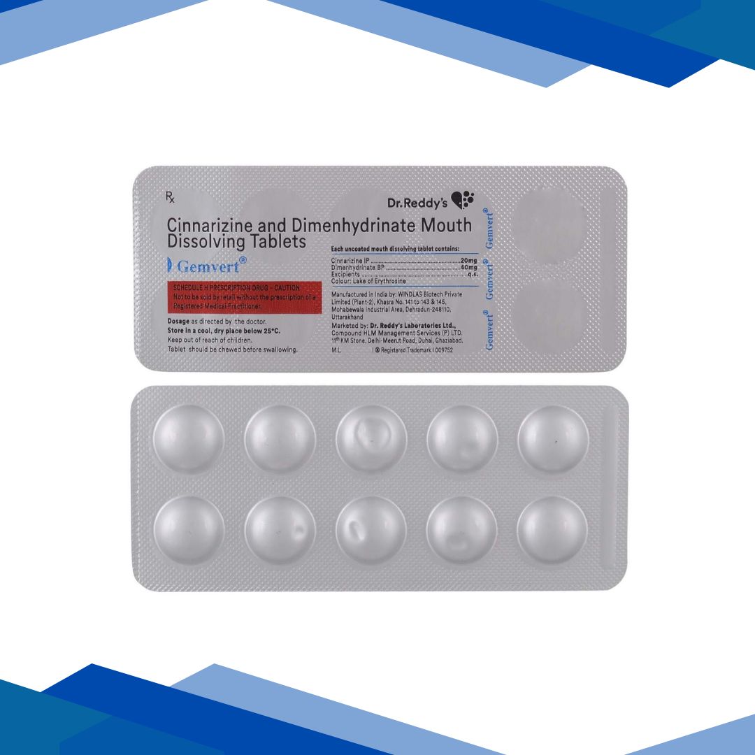 GEMVERT TABLET is a combination of Cinnarizine and Dimenhydrinate which belongs to the group of medicines called Antihistamines & Calcium channel blockers respectively. It is used for the short-term, symptomatic management of vertigo associated with Benign Paroxysmal positional vertigo (BPPV) and migraine in adults, who have not responded to alternative managements.