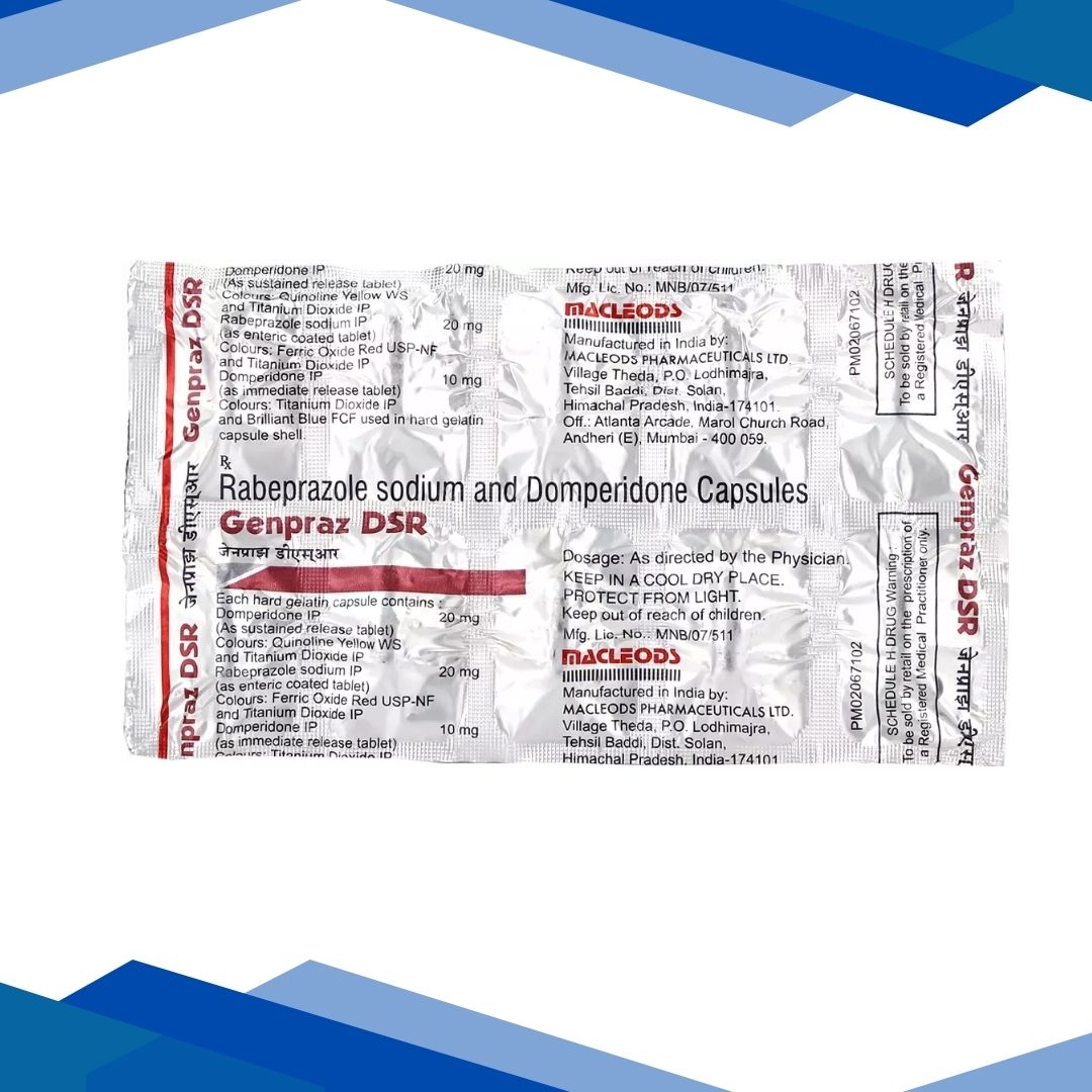 Genpraz DSR Capsule is a combination medicine used to treat gastroesophageal reflux disease (acid reflux). It works by relieving the symptoms of acidity, such as heartburn, stomach pain, or irritation. It also neutralizes the acid and promotes easy passage of gas to reduce stomach discomfort. For more details kindly click on Medicines Salts Below: