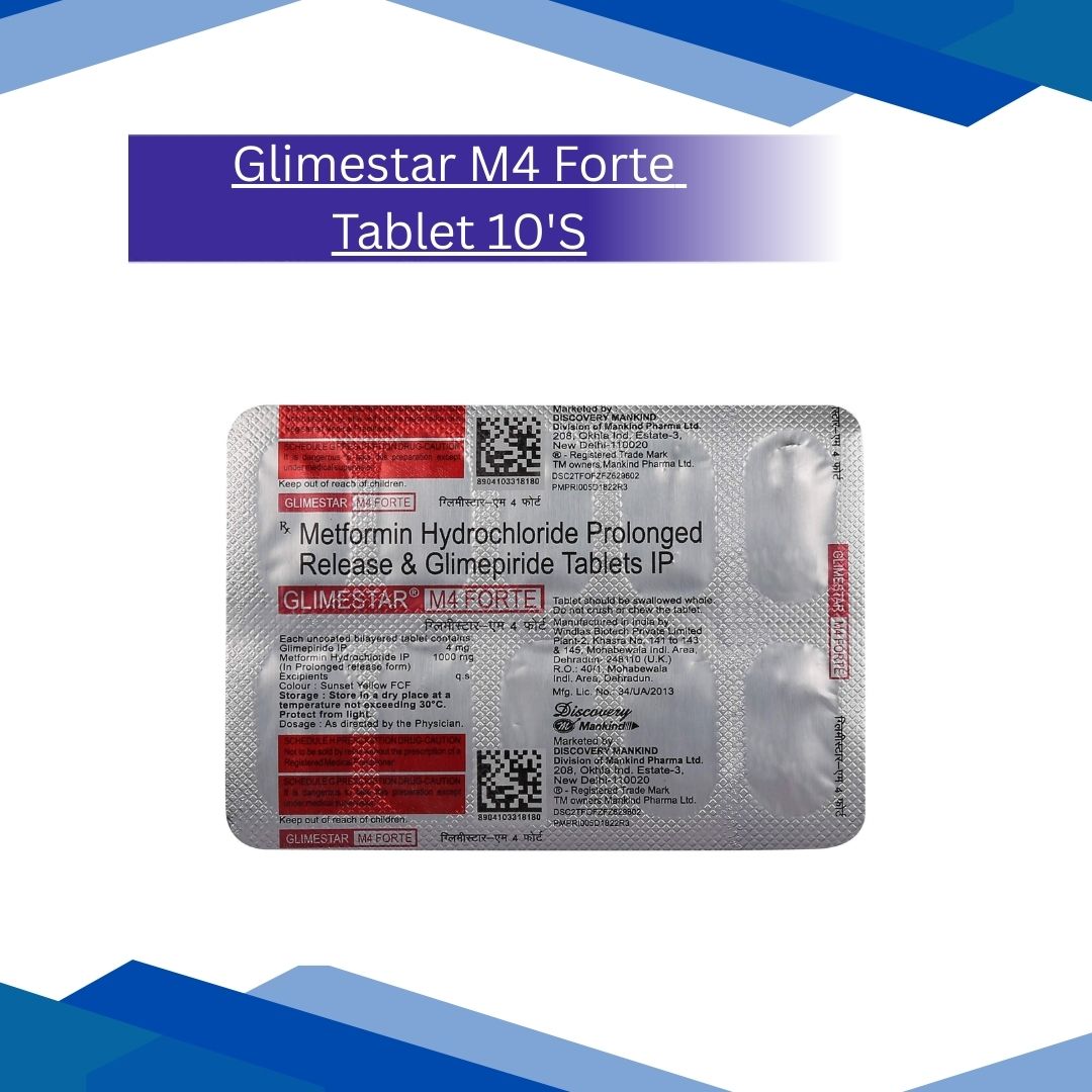 Glimestar M4 Forte Tablet 10’s is an antidiabetic medicine used in type 2 diabetes when diet, exercise, and single‑agent therapy don’t adequately control blood sugar. For more details kindly click on Medicine Salts below: