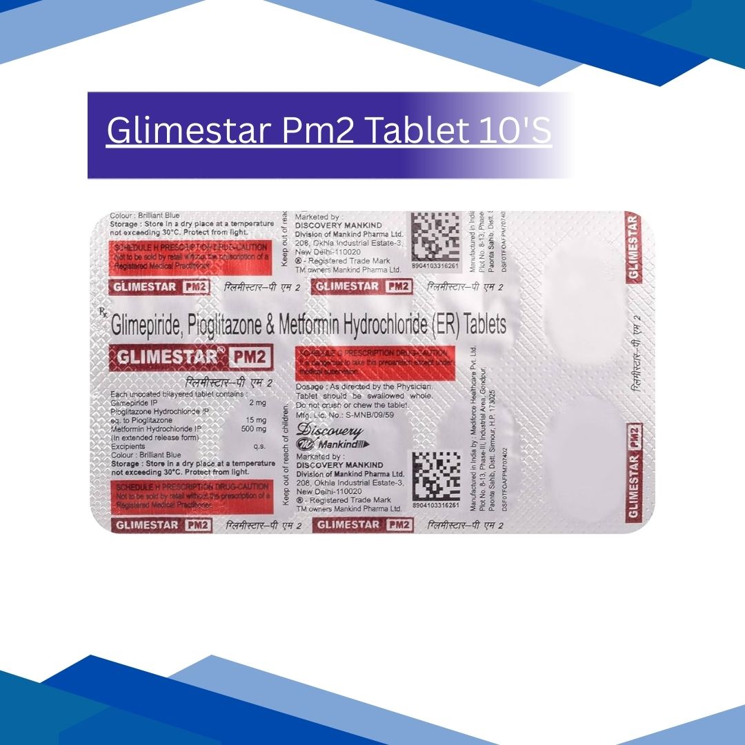 Glimestar PM2 Tablet 10’S is a dual-action antidiabetic medicine used in type 2 diabetes to help control blood sugar by increasing insulin release and slowing carbohydrate absorption. For more details kindly click on Medicine Salts below: