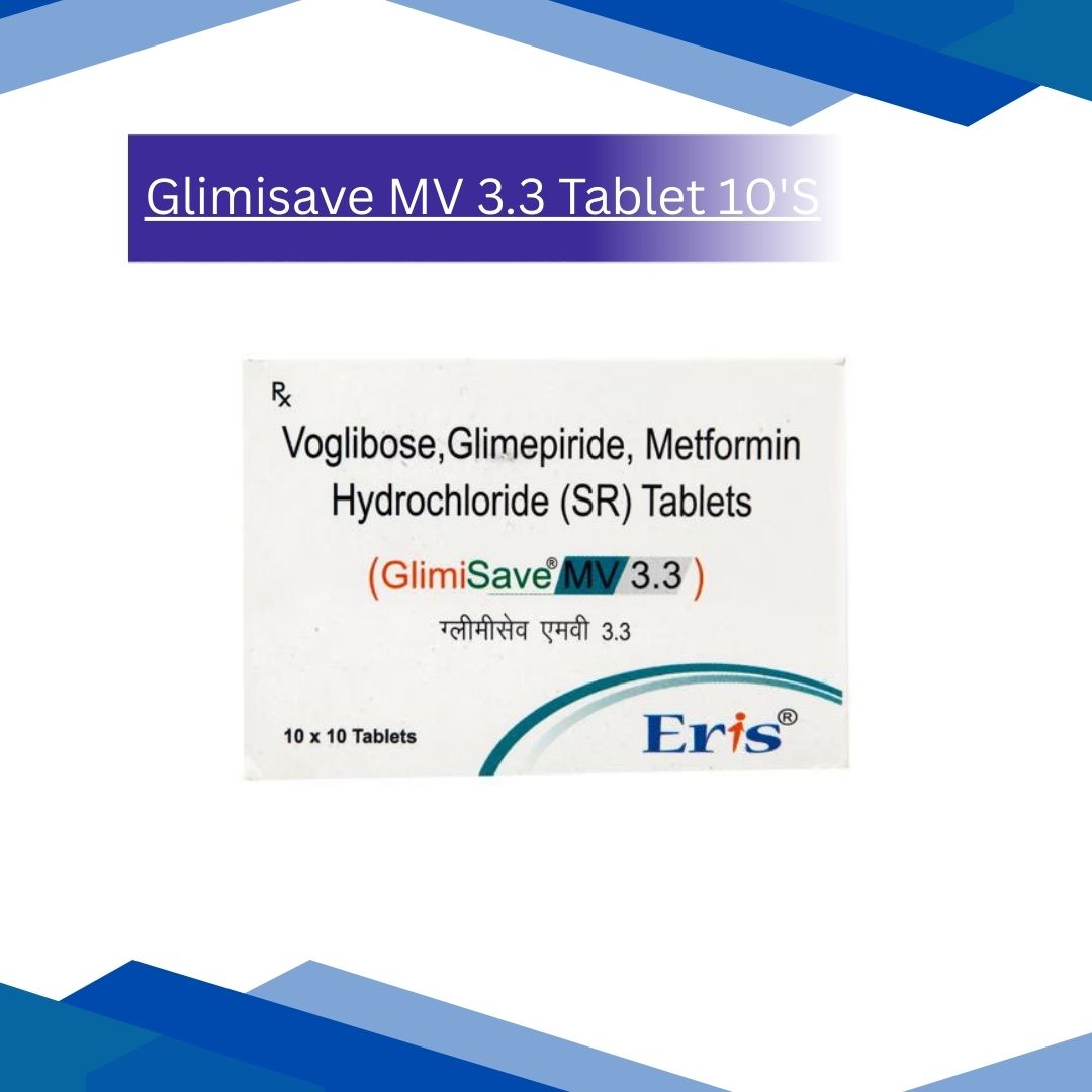 Glimisave MV 3.3 Tablet 10’S is a triple-action antidiabetic medicine used in type 2 diabetes to improve blood sugar control by increasing insulin release, reducing glucose production, and slowing carbohydrate absorption. For more details kindly click on Medicine Salts below: