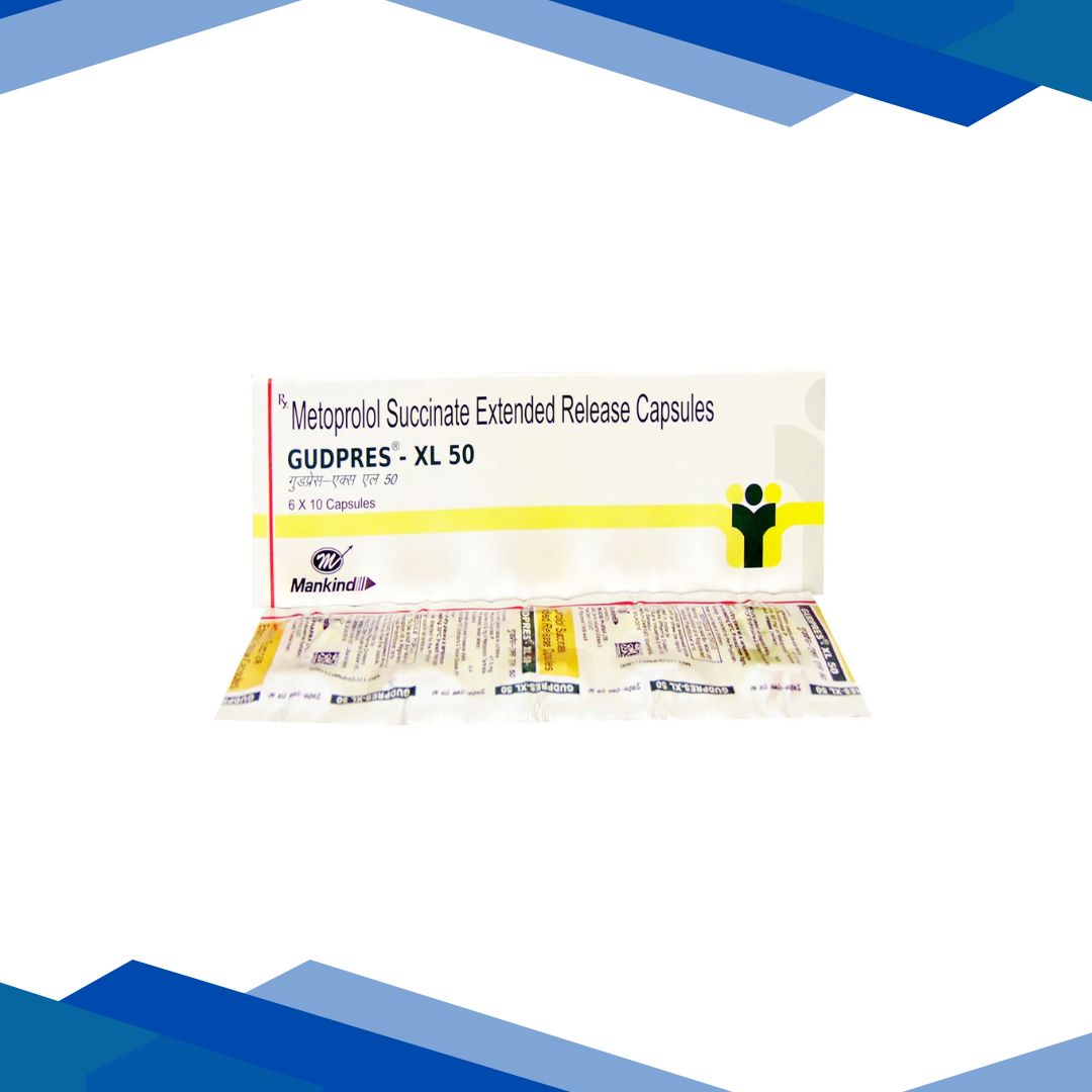 Gudpres XL 50 mg Capsule (10’s) is a beta-blocker medicine used for managing high blood pressure, angina (chest pain), certain irregular heart rhythms, and for reducing strain on the heart. For more details kindly click on Medicine Salts below: