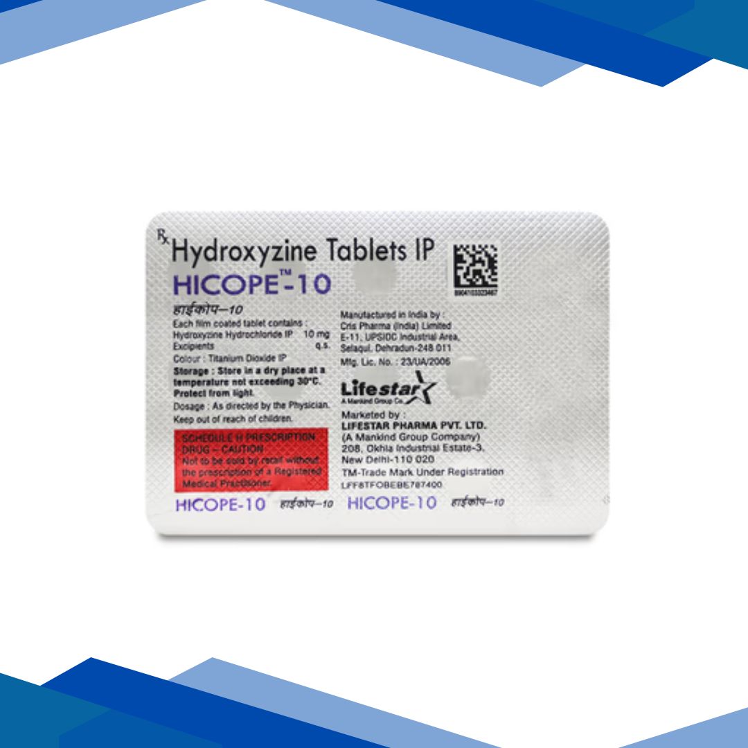 Hicope 10mg Tablet 15’s is an antihistamine medicine used to relieve allergic conditions such as itching, rashes, swelling, and urticaria, and is also prescribed to help manage anxiety and provide calming/sedative effects by reducing activity in the brain. It works by blocking the action of histamine, a chemical that causes allergy symptoms. For more details kindly click on Medicine Salts below: