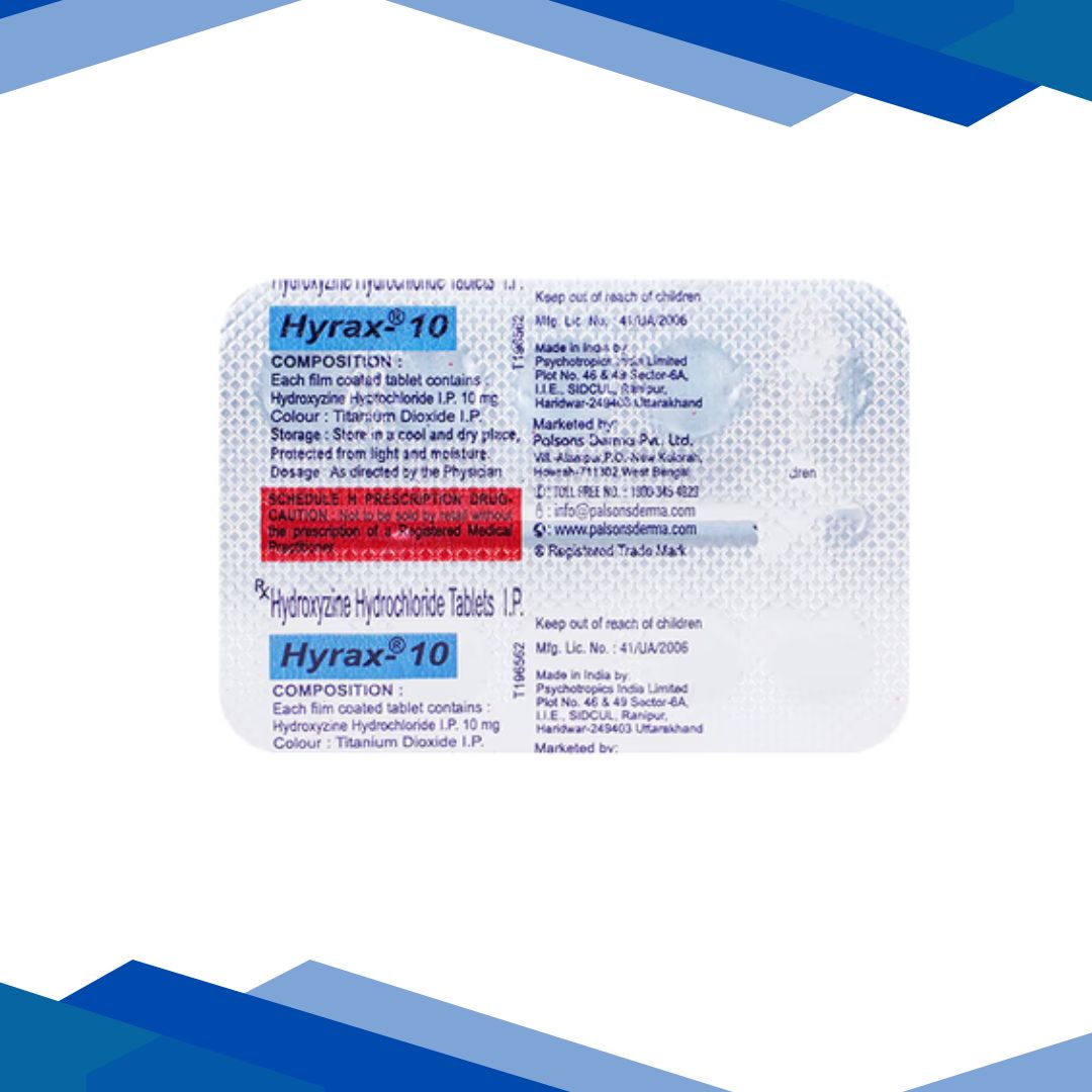 Hyrax 10mg Tablet 10’s is an antihistamine medicine used to relieve allergy symptoms such as itching, swelling, rashes, and hives, and is also prescribed to help manage anxiety or induce mild sedation by calming the brain. For more details kindly click on Medicine Salts below: