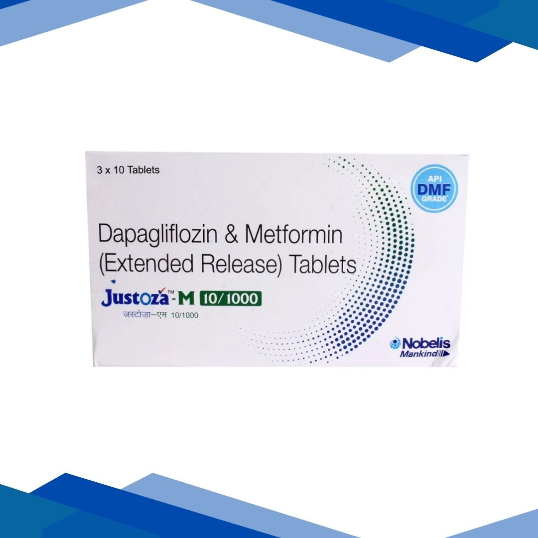Justoza-M 10/1000 Tablet ER is a combination medicine used in the management of type 2 diabetes. It works by promoting urinary glucose excretion (dapagliflozin) and reducing hepatic glucose production (metformin), thus helping to effectively control blood sugar levels over the day. For more details kindly click on Medicine Salts below: