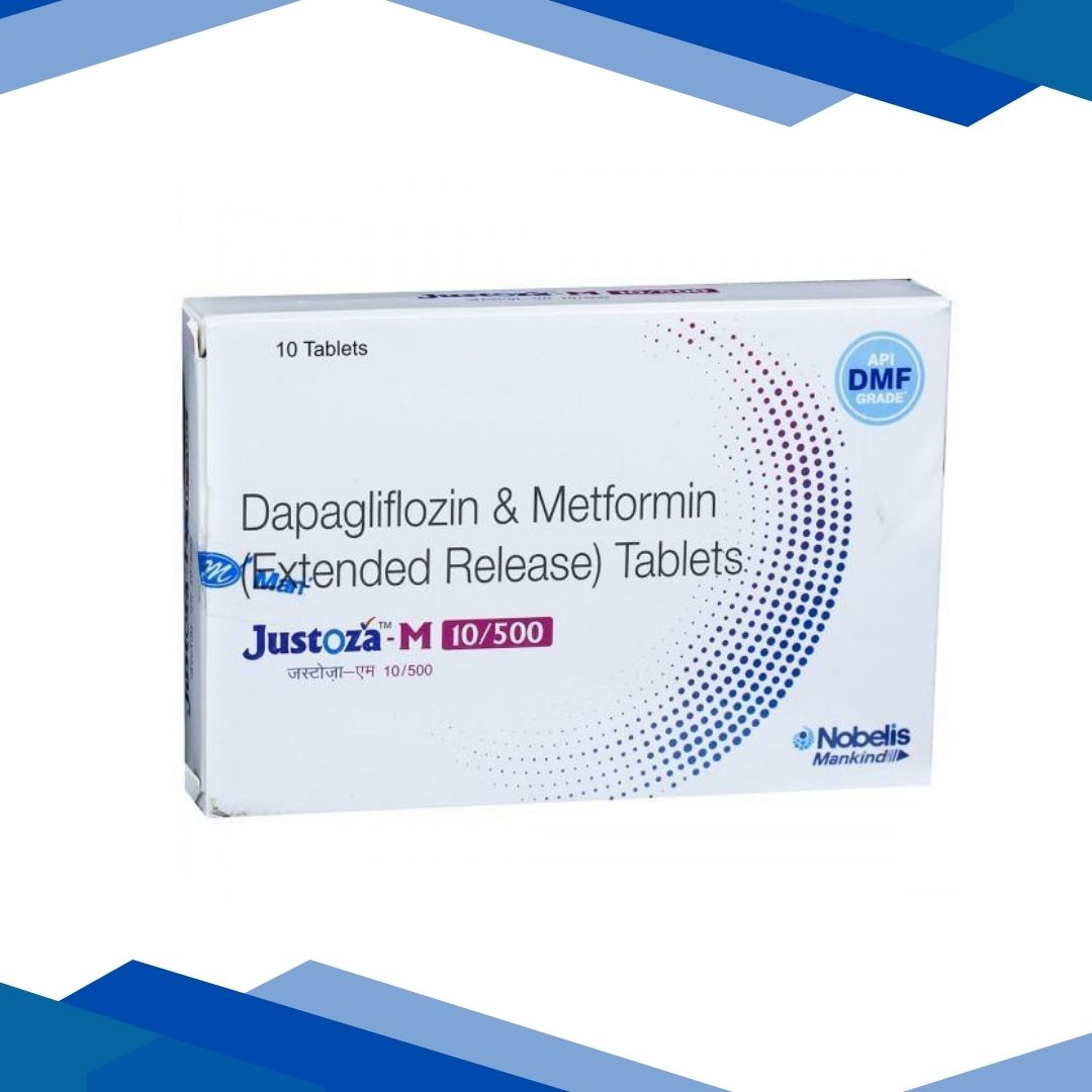 Justoza-M 10/500 Tablet ER is a combination antidiabetic medicine used for managing type 2 diabetes mellitus. It helps lower blood sugar by removing excess glucose via urine (dapagliflozin) and reducing glucose production in the liver (metformin). For more details kindly click on Medicine Salts below: