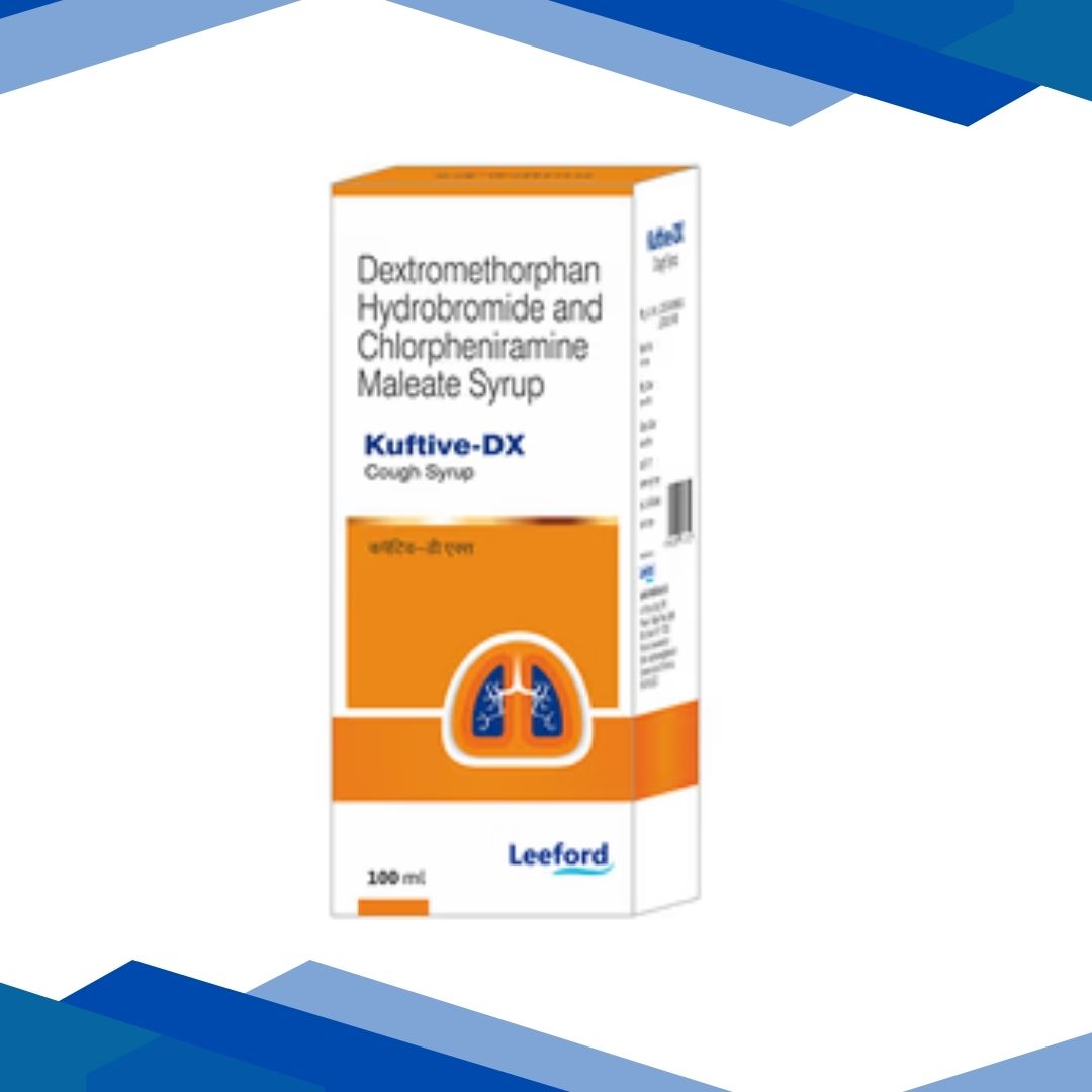 KUFTIVE DX SYRUP is used to relieve cough due to throat or bronchial irritation, sneezing and running nose caused by cold, dry cough, allergic cough, post-operative cough, smokers cough, and night-time cough. It is also used to manage hay fever or upper respiratory allergies such as sneezing, runny nose, itchy, watery eyes, and itching of the nose and throat. Contact your doctor before taking.