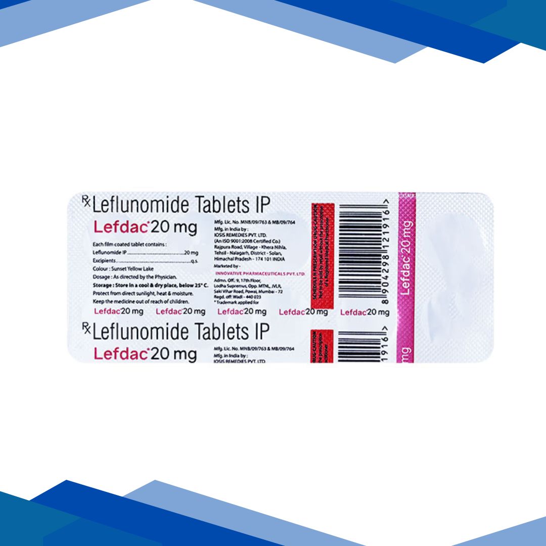 LEFDAC 20MG TABLET contains Leflunomide which belongs to the group of medicines called Anti-rheumatics. It is indicated in adults for the management of active rheumatoid arthritis. Rheumatoid arthritis is an auto-immune chronic inflammatory disorder which affects many joints including those in the hands and feet. Symptoms include inflammation of joints, swelling, difficulty moving and pain, loss of appetite, fever, loss of energy and anaemia (lack of red blood cells).