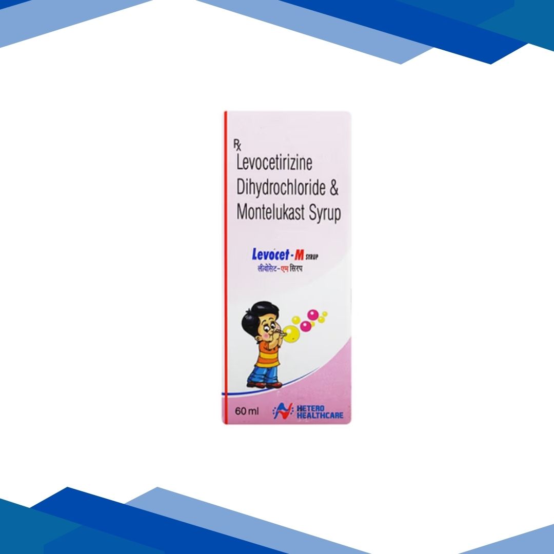 LEVOCET M 4/2.5MG SYRUP is used in children for the management of signs and symptoms of allergic rhinitis (sneezing, runny or stuffy nose, nasal itching, red, watery or itchy eyes, throat irritation, cough, headache and tiredness), chronic idiopathic urticaria (allergic skin reaction with red raised itchy bumps on skin) and bronchial asthma.
